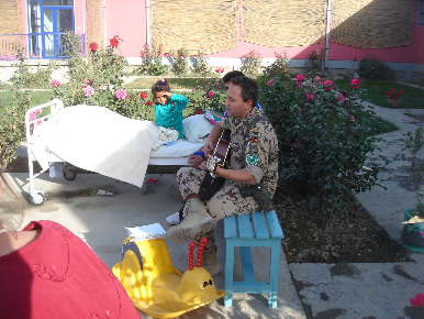 2006: George spielt für kranke und verletzte Kinder im IRENE SALIMI Kinderkrankenhaus in KABUL