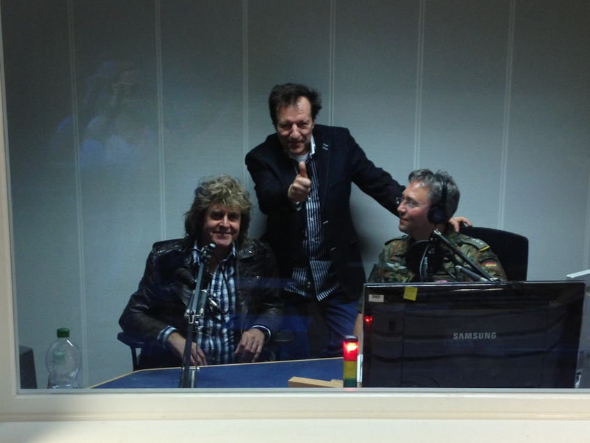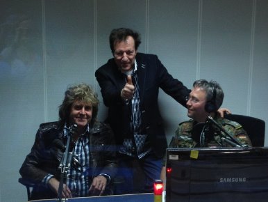 Mit Hermann Rarebell (ex SCORPIONS Drummer (Bildmitte) und John Parr ("St. Elmo's Fire") (links) im Radio Andernach Studio Mayen)